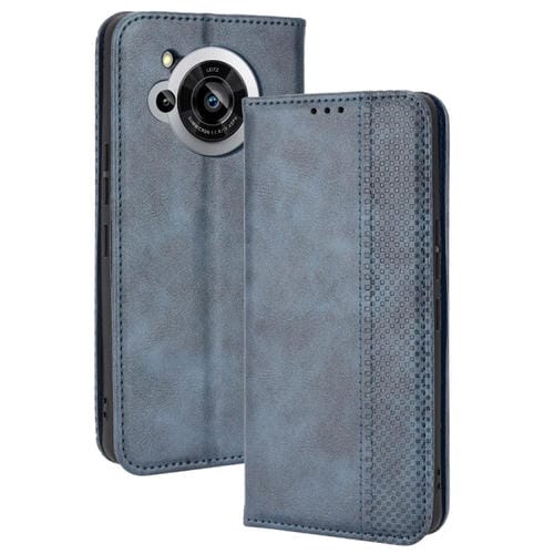 Funda para Aquos R7 de Cuero Retro con Hebilla Magnética (Azul)