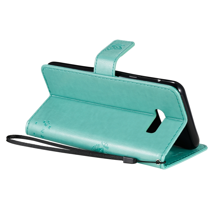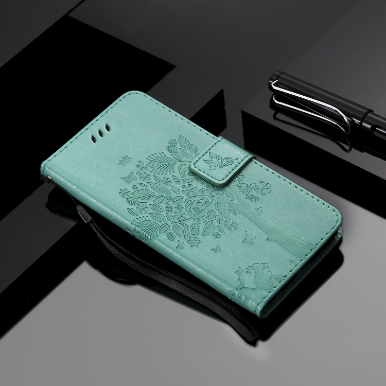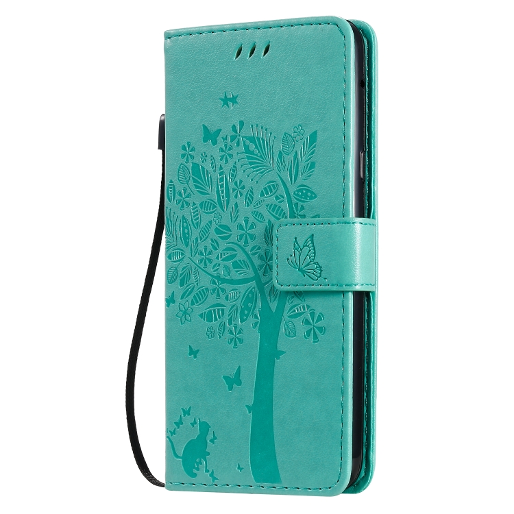 Estuche de Cuero PU para LG G8X con Diseño Árbol y Gato, Soporte, Ranuras y Billetera (Verde)