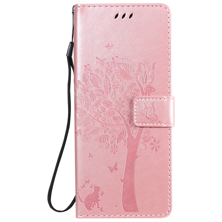 Funda de Cuero para LG G9 Tree & CAT con Tapa Horizontal, Soporte, Ranuras para Tarjetas, Billetera y Cordón (Oro Rosa)