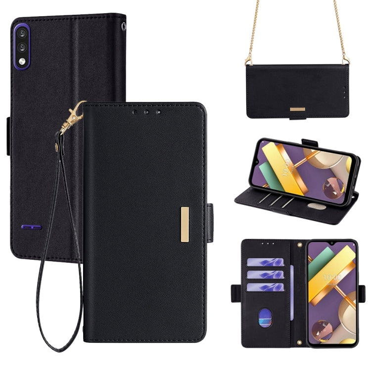 Funda de Cuero para Teléfono LG K22 con Cadena Cruzada (Negro)