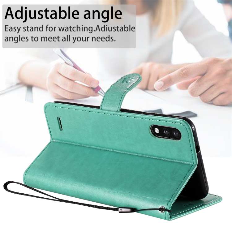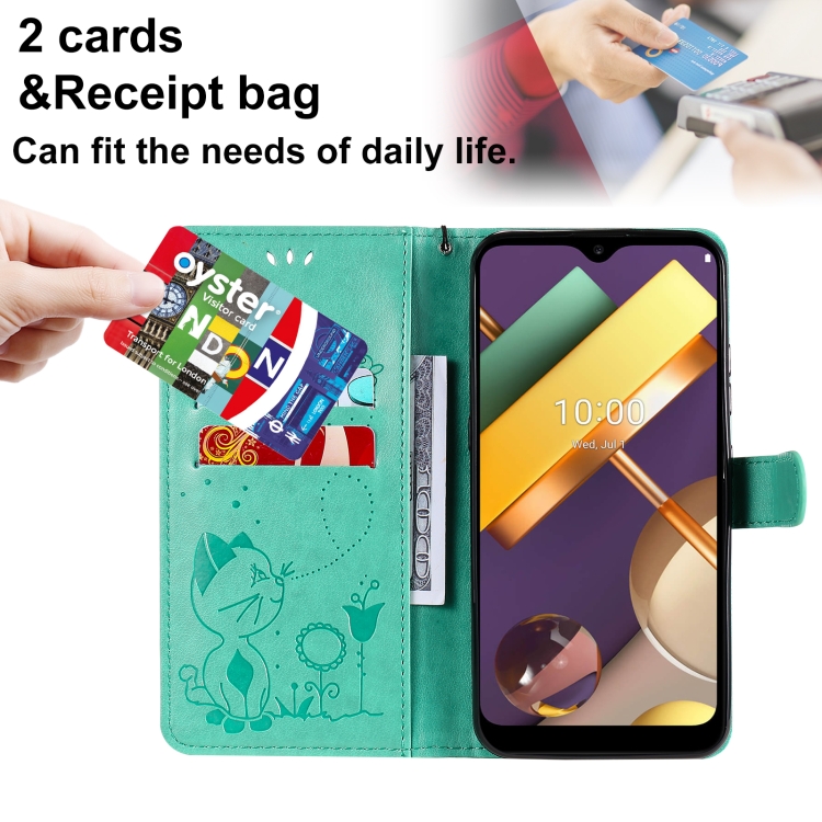 Funda de Cuero LG K22 K22 Plus CAT Bee Patrón Relieve Tapa Horizontal Soporte Ranuras Tarjetas Billetera (Verde)