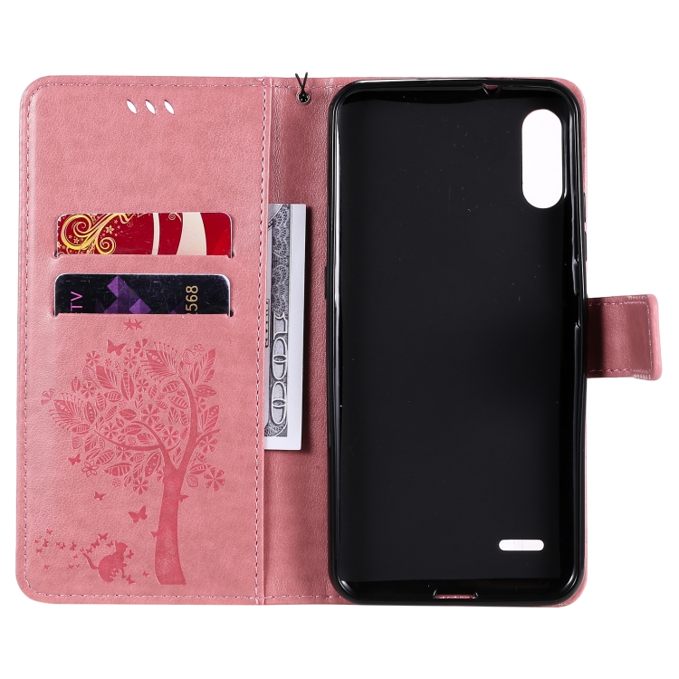 Funda Cuero PU LG K22 K22 Plus con Tapa Horizontal, Soporte, Ranuras y Cordón (Rosa)