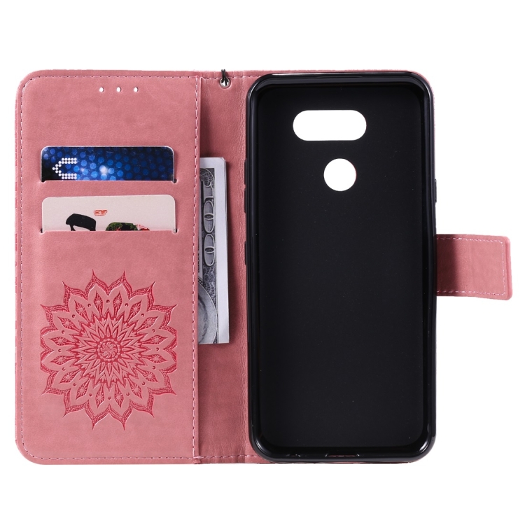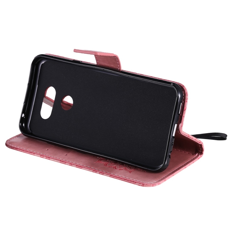 Funda Cuero PU LG K40S con Tapa Horizontal, Soporte, Ranuras para Tarjetas y Cordón (Rosa)