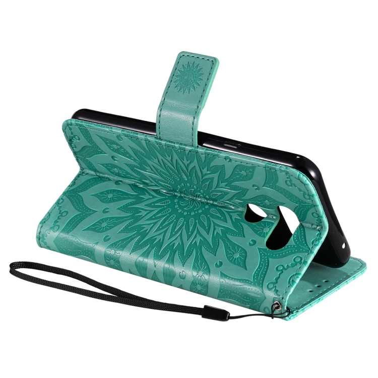 Funda Cuero PU LG K40S con Tapa Horizontal, Soporte, Ranuras y Cordón (Verde)