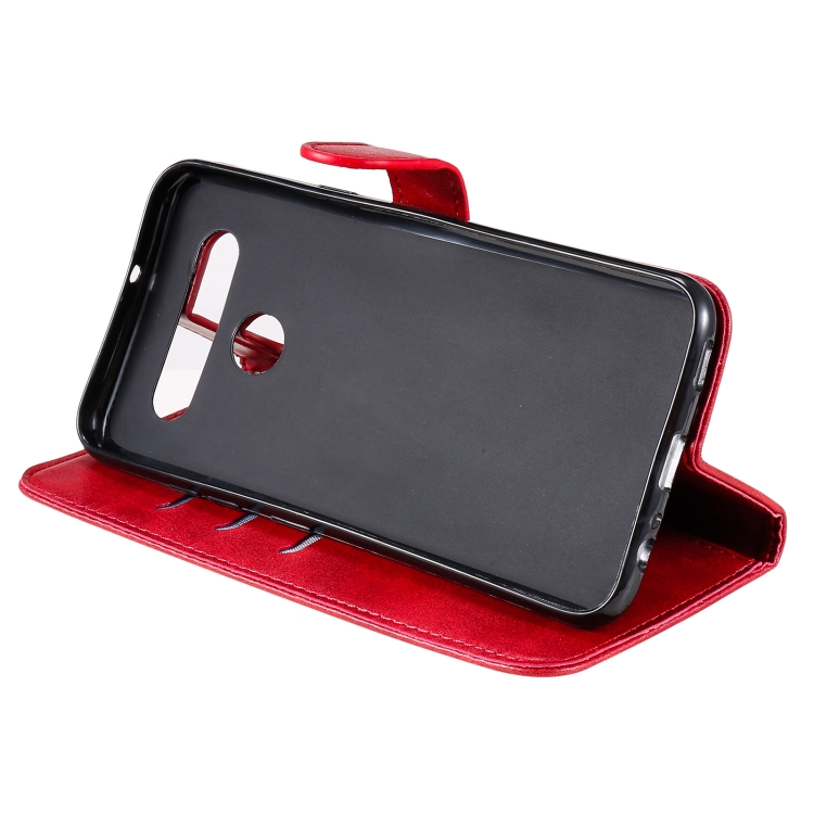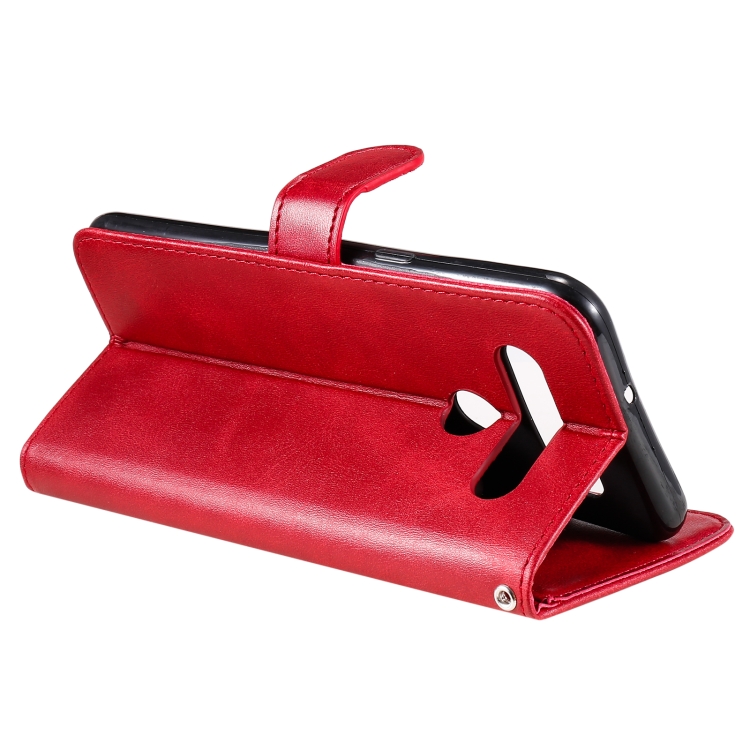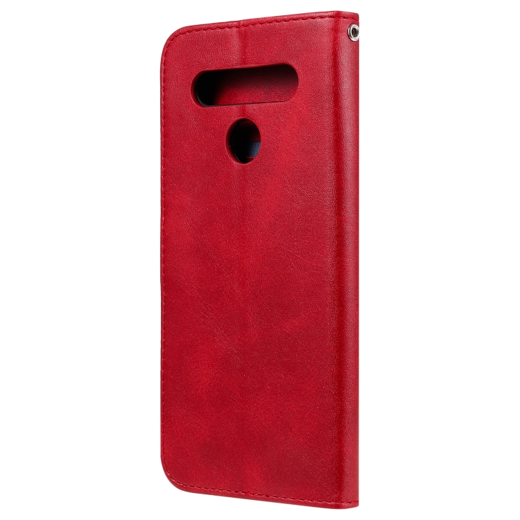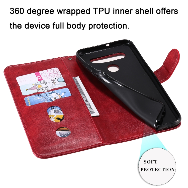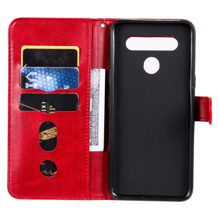 Estuche de Cuero para LG K41S K51S con Tapa Horizontal, Cremallera, Soporte, Ranuras para Tarjetas y Billetera (Rojo)