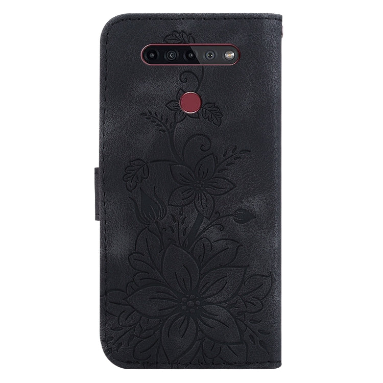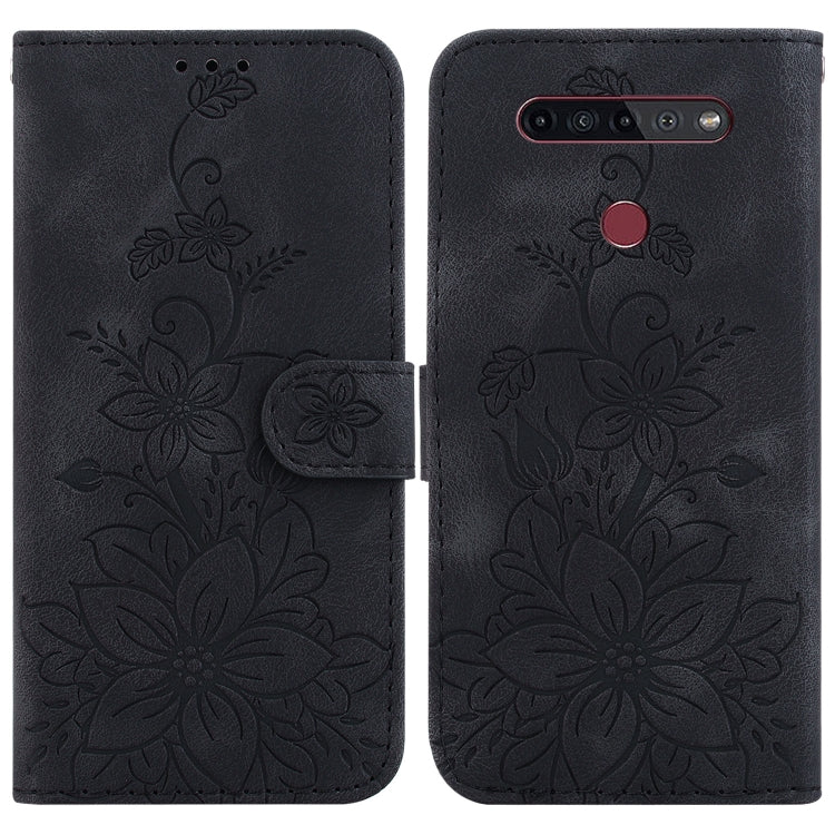 Estuche para Teléfono LG K41S K51S Cuero en Relieve Lily (Negro)