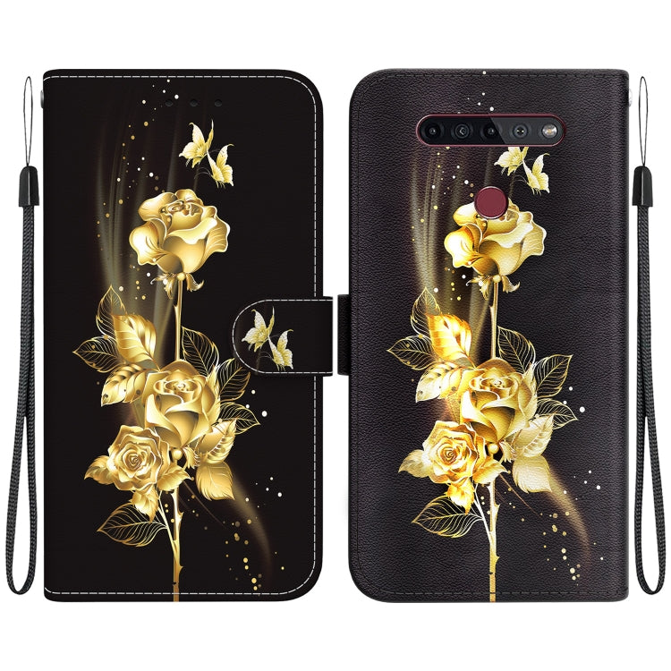 Funda de Cuero para LG K41S K51S con Dibujo Coloreado y Textura de Cristal (Mariposa Dorada Rosa)