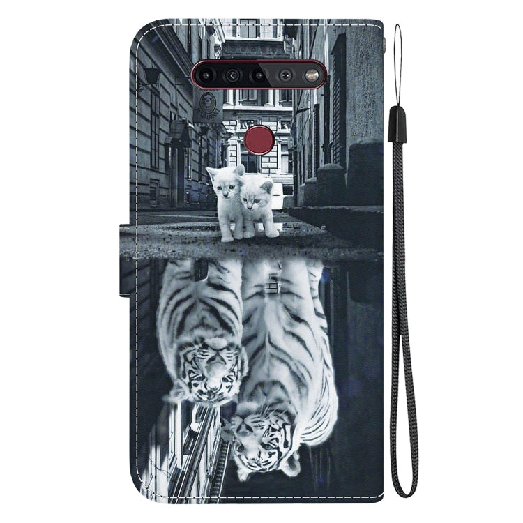 Funda para teléfono LG K41S K51S cuero dibujo coloreado textura cristal (Reflejo de Tigre Gato)