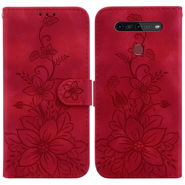 Funda para Teléfono LG K41S K51S Cuero con Relieve Lily (Rojo)