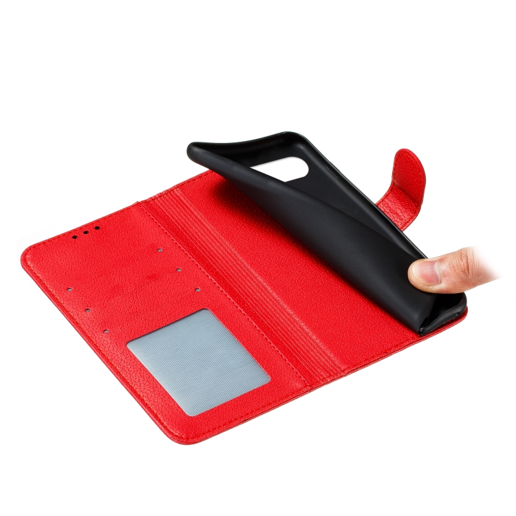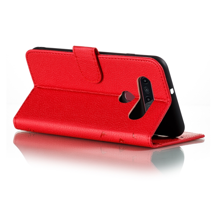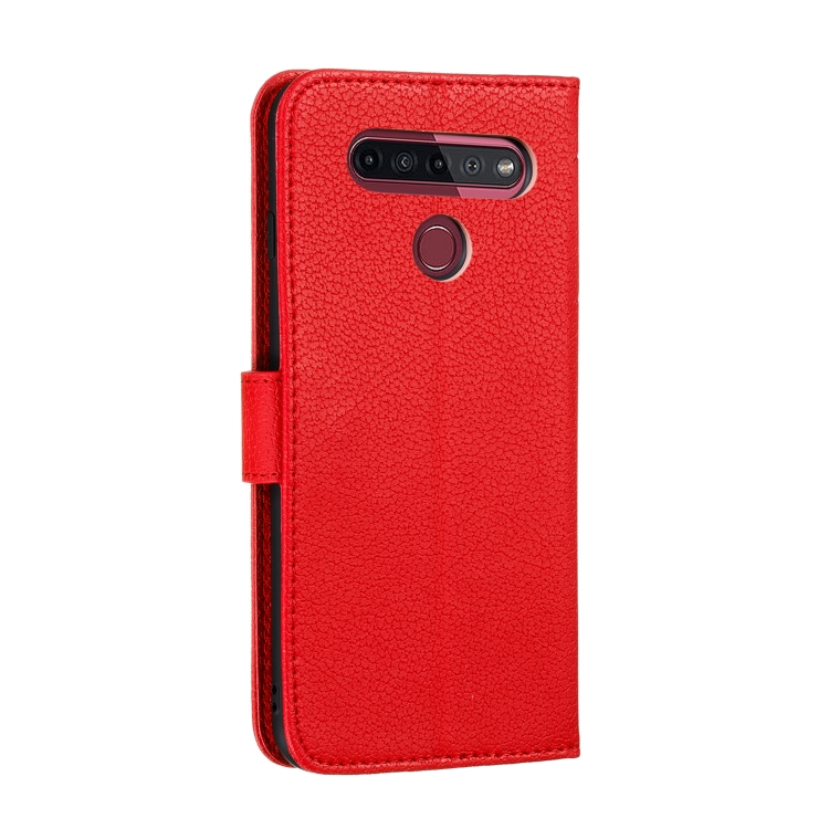 Funda de Cuero para LG K41S / K51S con Patrón de Plumas, Tapa Horizontal, Billetera y Soporte (Rojo)