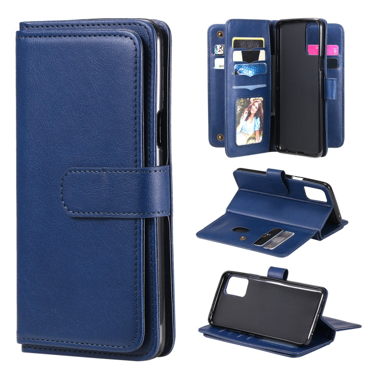 Funda Cuero LG K42 Horizontal Flip con Hebilla Cobre, 10 Ranuras, Billetera, Soporte y Marco (Azul Oscuro)