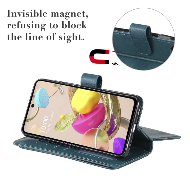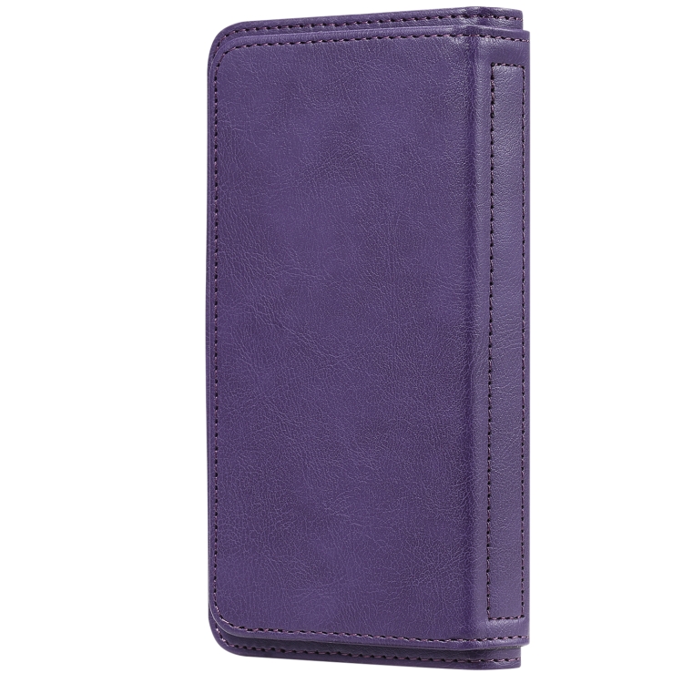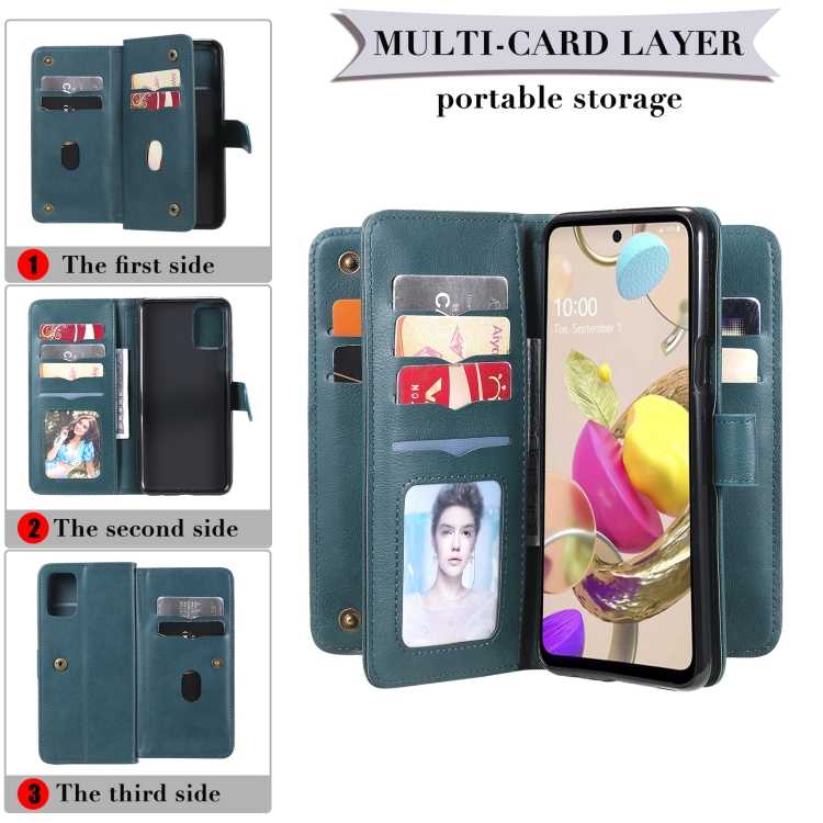 Funda Cuero LG K42 Multifuncional Hebilla Cobre Magnética Flip Horizontal 10 Ranuras (Púrpura)