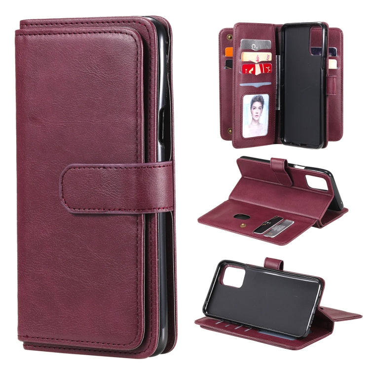Funda de Cuero para LG K42 con Hebilla Magnética, 10 Ranuras, Billetera y Soporte (Vino Rojo)