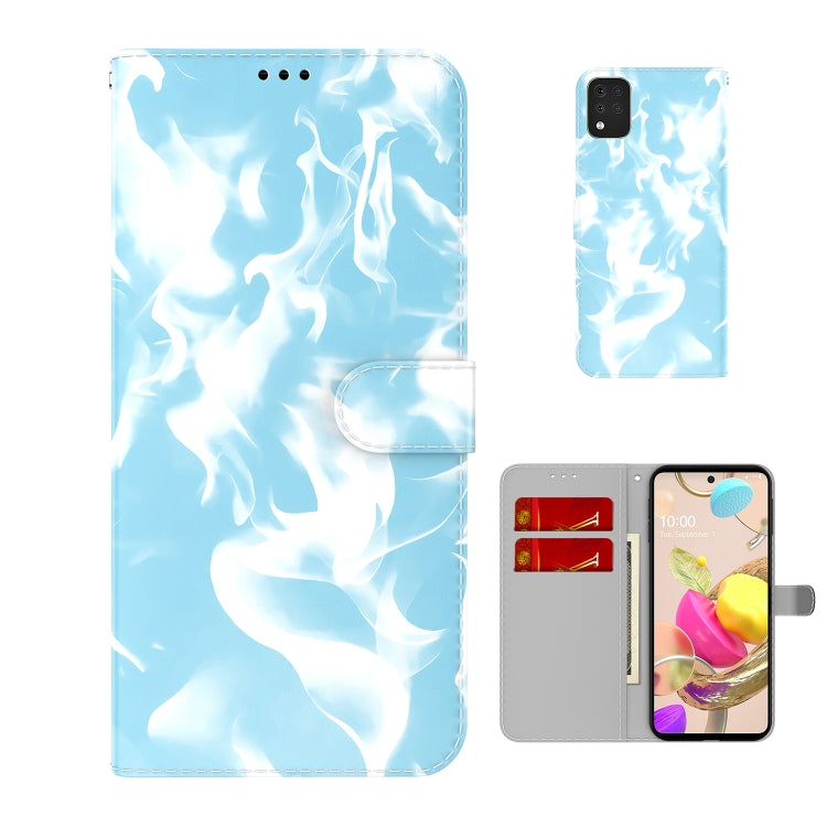 Funda de Cuero Horizontal para LG K42 Nube Nube Pattern con Soporte y Ranura para Tarjeta (Sky Blue)