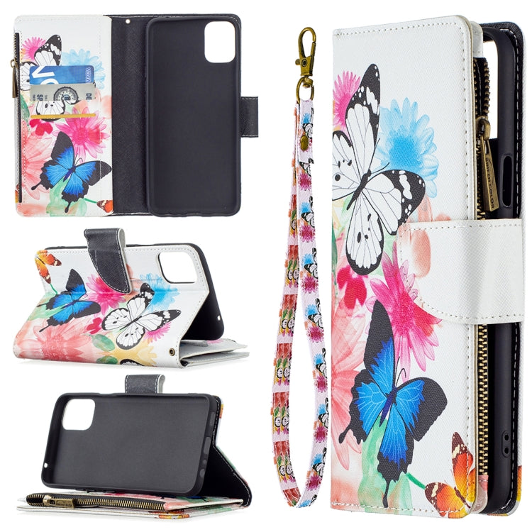 Funda de Cuero para LG K42 con Cremallera Horizontal, Soporte, Tragamonedas y Billetera (Dos Mariposas)