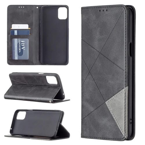 Funda Magnética para LG K42 Rhombus Texture Horizontal Flip con Soporte y Ranuras para Tarjetas (Negro)