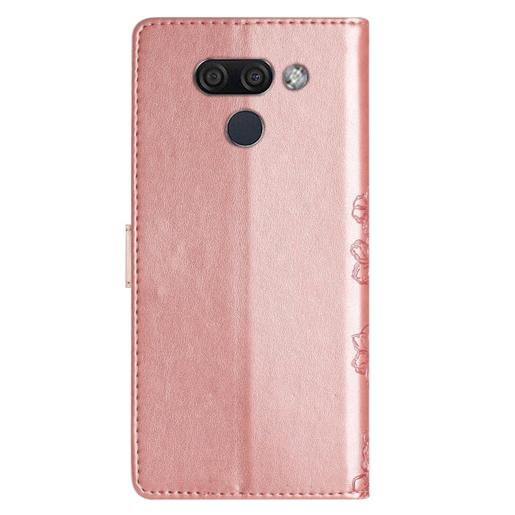 Funda para LG K50 Cherry Blossom Butterfly Skin Feel de PU en Relieve (Oro Rosa)