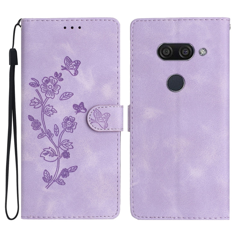 Funda de Cuero para LG K50 / Q60 con Estampado de Mariposa y Flores (Púrpura)