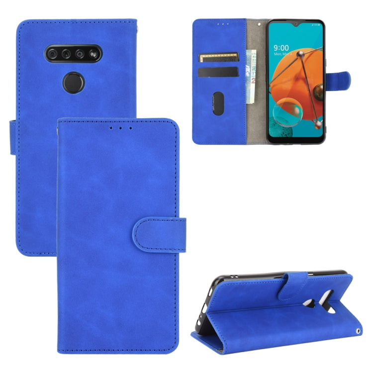 Funda Cuero PU LG K51 Q51 Hebilla Magnética Textura Becerro Soporte Tarjetas Billetera (Azul)