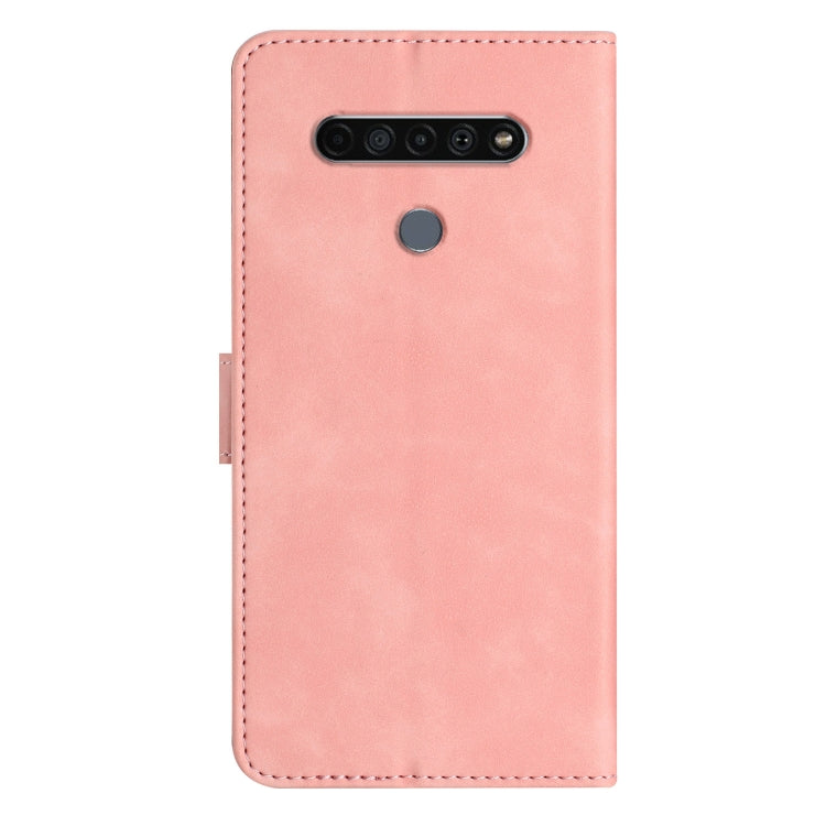 Funda de Cuero para LG K51S Seven Butterflies con Relieve (Rosa)