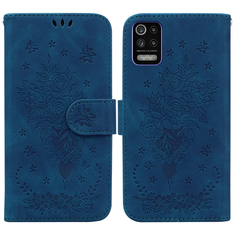 Funda de Cuero para LG K52 / K62 / Q52 Butterfly Rose Rossed Funcho (Azul)