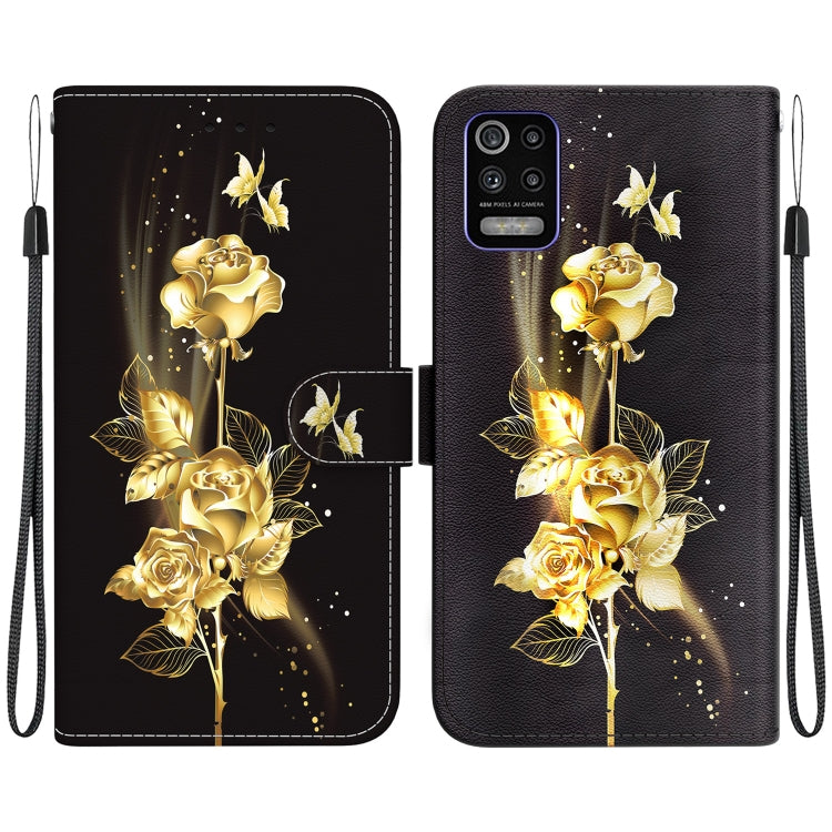 Funda para LG K52 K62 Q52 de Cuero con Dibujo Coloreado y Textura de Cristal (Mariposa Dorada Rosa)