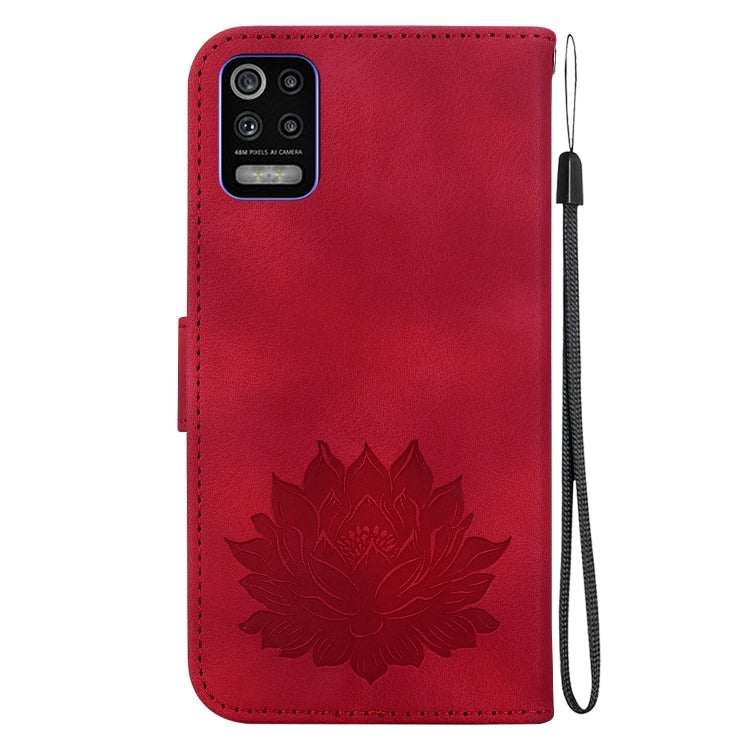 Funda para Teléfono LG K52 K62 Q52 Cuero con Relieve de Loto (Rojo)