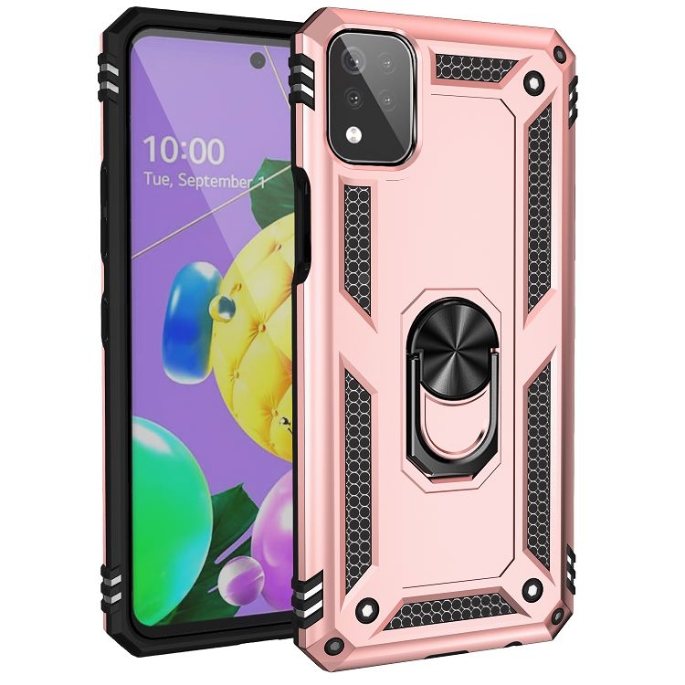 Funda Protectora para LG K53 TPU + PC con Soporte Giratorio 360 Grados (Oro Rosa)