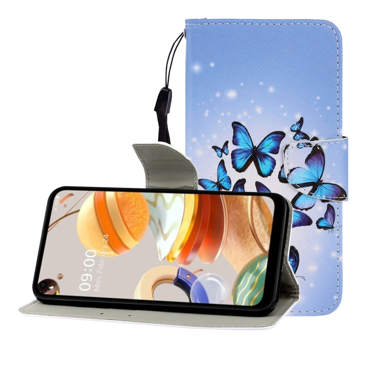 Funda de Cuero abatible Horizontal para LG K61 con Soporte, Ranura para Tarjeta y Billetera (Muchas Mariposas)