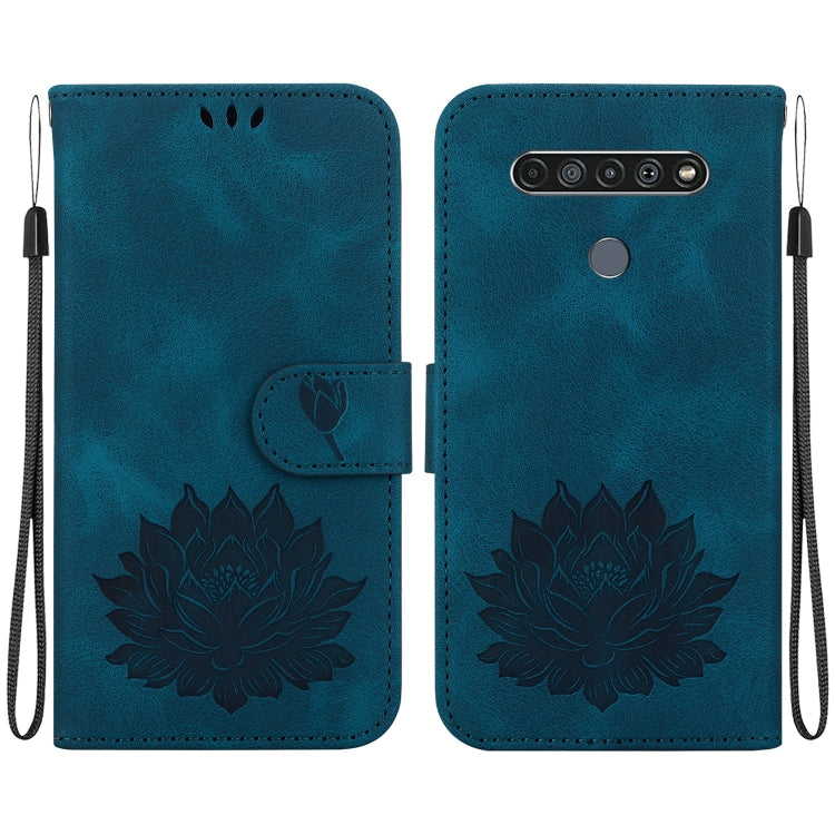 Funda de Cuero para LG K61 con Relieve de Loto (Azul Oscuro)