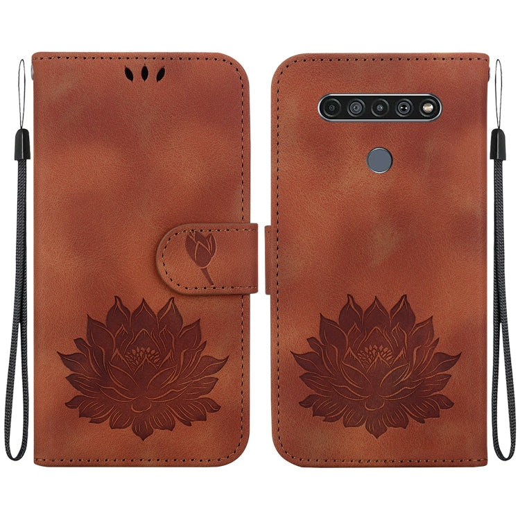 Funda de Cuero para LG K61 con Relieve de Loto (Marrón)
