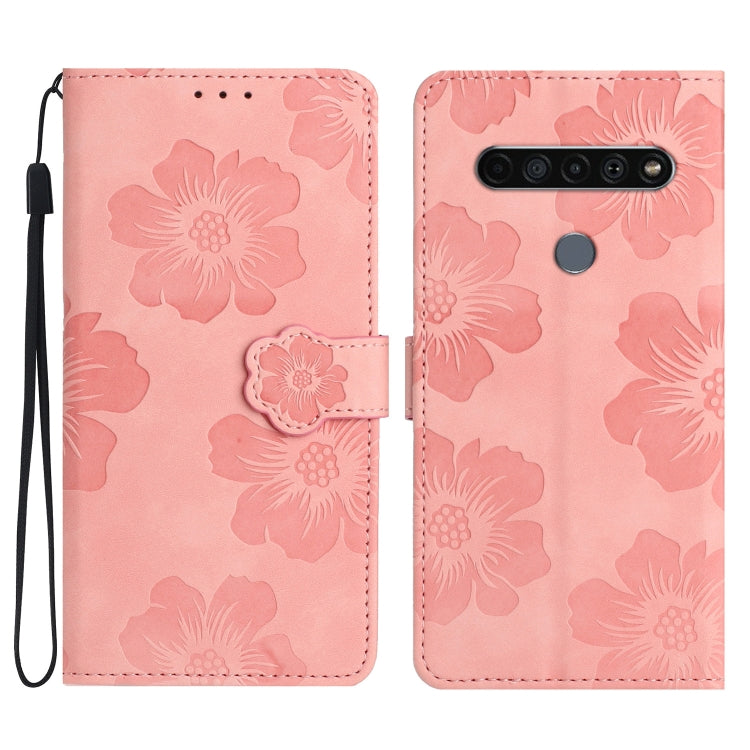 Funda de Cuero para LG K61 con Estampado de Flores en Relieve (Rosa)