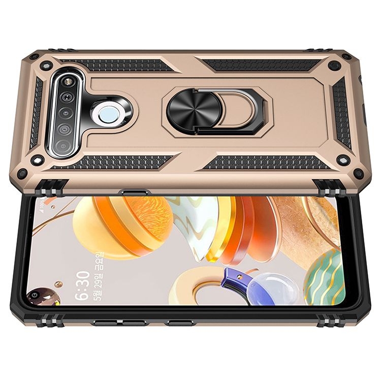 Funda Protectora para LG K61 TPU + PC a Prueba de Golpes con Soporte Giratorio 360 (Dorado)