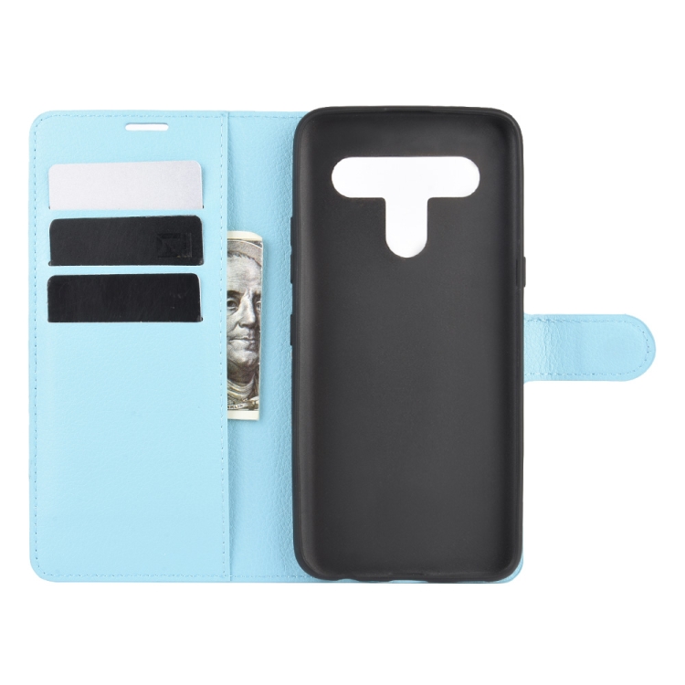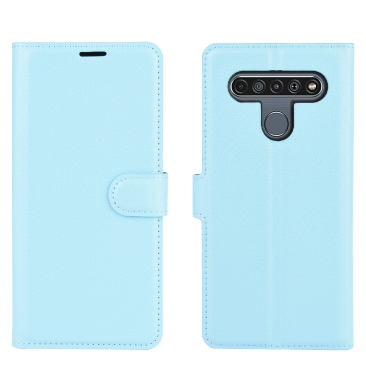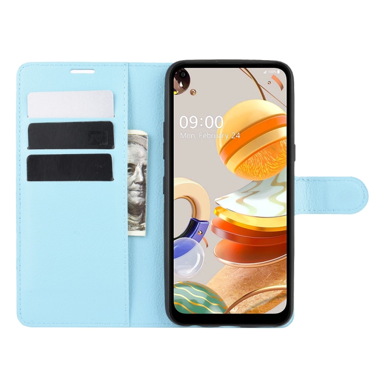 Funda Protectora para LG K61 Litchi Texture con Tapa Horizontal, Soporte, Ranuras para Tarjetas y Billetera (Azul)