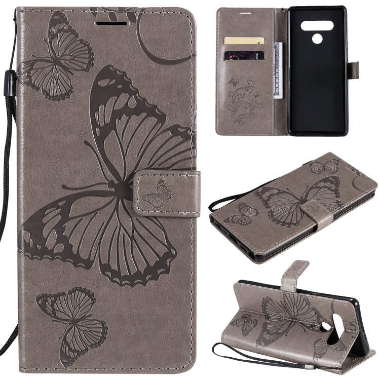 Estuche de Cuero para LG Stylo 6 con Tapa Horizontal, Patrón Mariposa 3D, Soporte, Ranura para Tarjeta y Cordón (Gris)