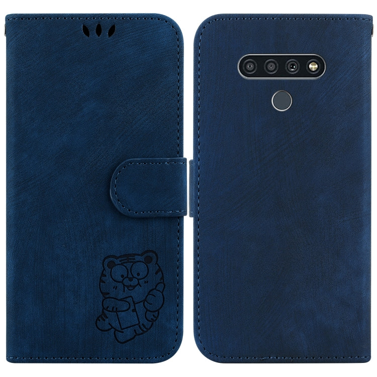 Funda para Teléfono LG Stylo 6 K71 de Cuero con Relieve Little Tiger (Azul Oscuro)