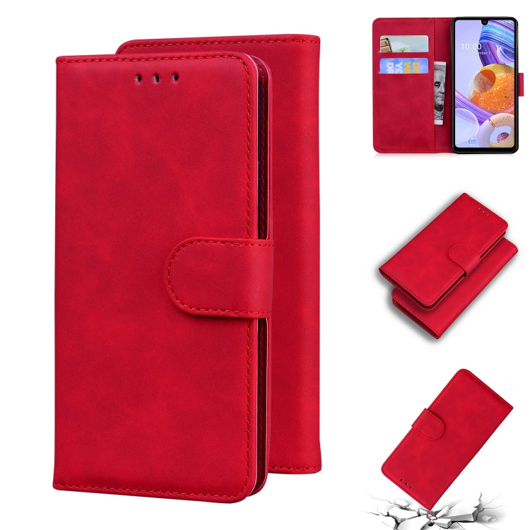 Funda para Teléfono LG Stylo 6 K71 de Cuero Siente la Piel Color Puro (Rojo)