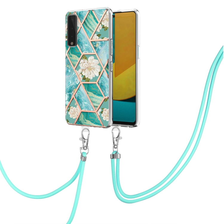 Funda TPU para LG Stylo 7 5G con patrón de flores de mármol y cordón (Flor Azul)