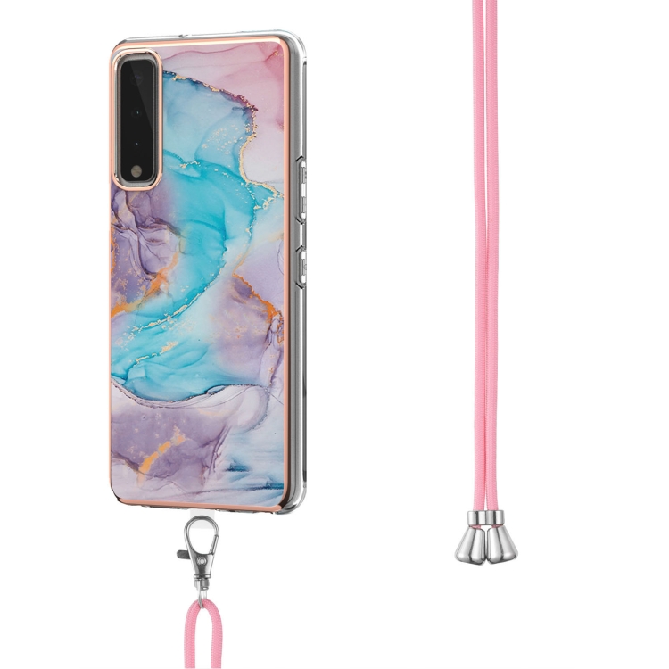 Funda TPU para LG Stylo 7 5G con patrón de Galvanoplastia Imd a prueba de golpes y cordón (Mármol Azul)