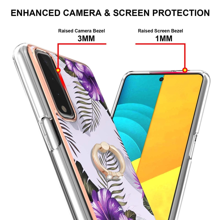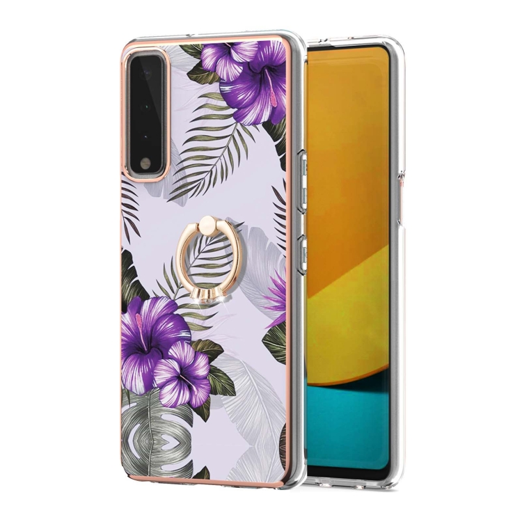 Funda TPU LG Stylo 7 5G Patrón Galvanoplastia a Prueba de Golpes con Soporte Anillo Diamantes (Flor Morada)