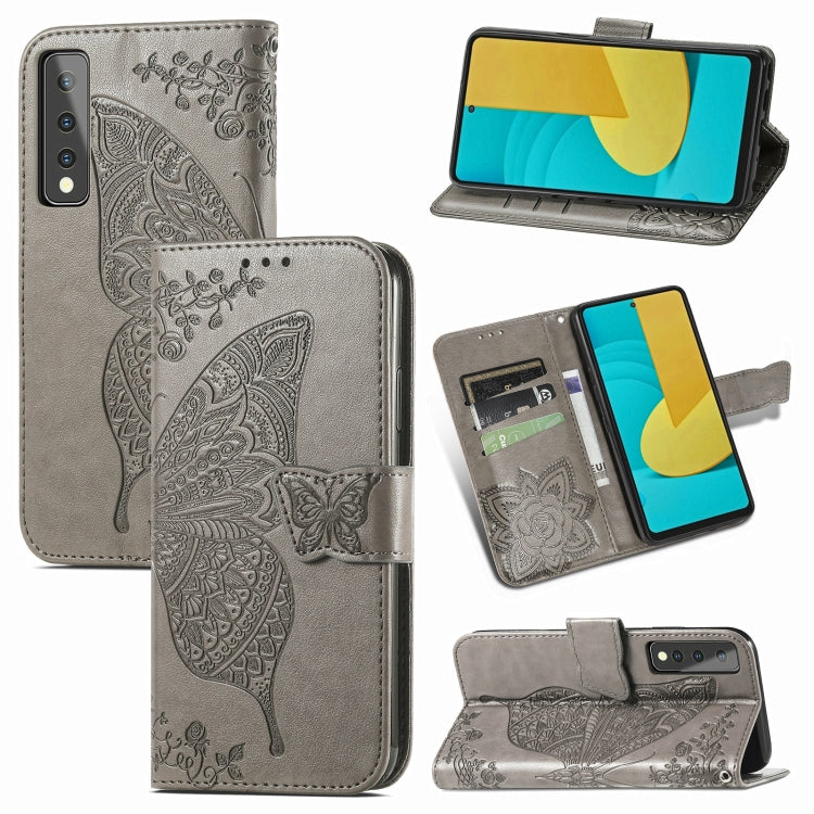 Funda de Cuero Horizontal para LG Stylo 7 Butterfly Love Flowe con Soporte, Tarjeta, Wallet y Lanyard (Gray)
