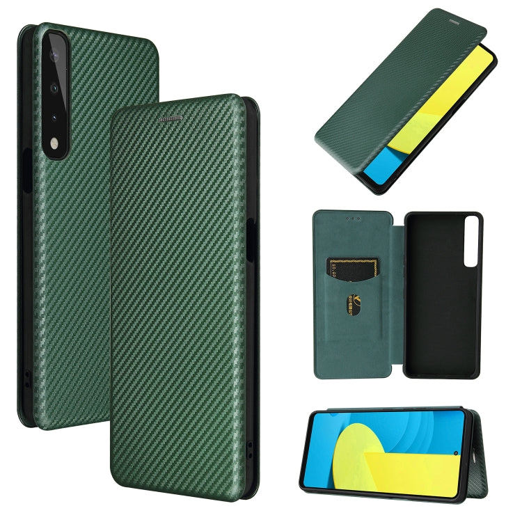 Funda para LG Stylo 7 Textura Fibra de Carbono Magnética Flip TPU + PC Cuero PU con Ranura (Verde)