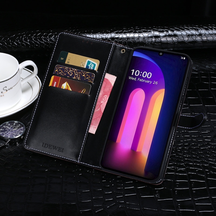 Funda de Cuero Idewei para LG V60 Thinq con Tapa Horizontal, Textura Cocodrilo, Soporte y Ranuras (Negro)