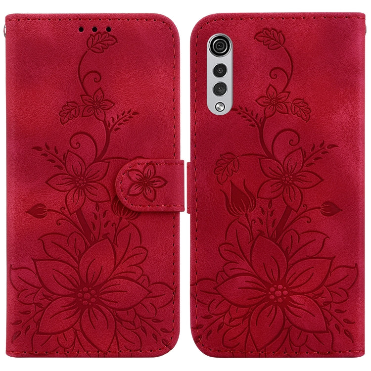 Estuche para Teléfono LG Velvet 4G 5G G9 Cuero En Relieve Lily (Rojo)