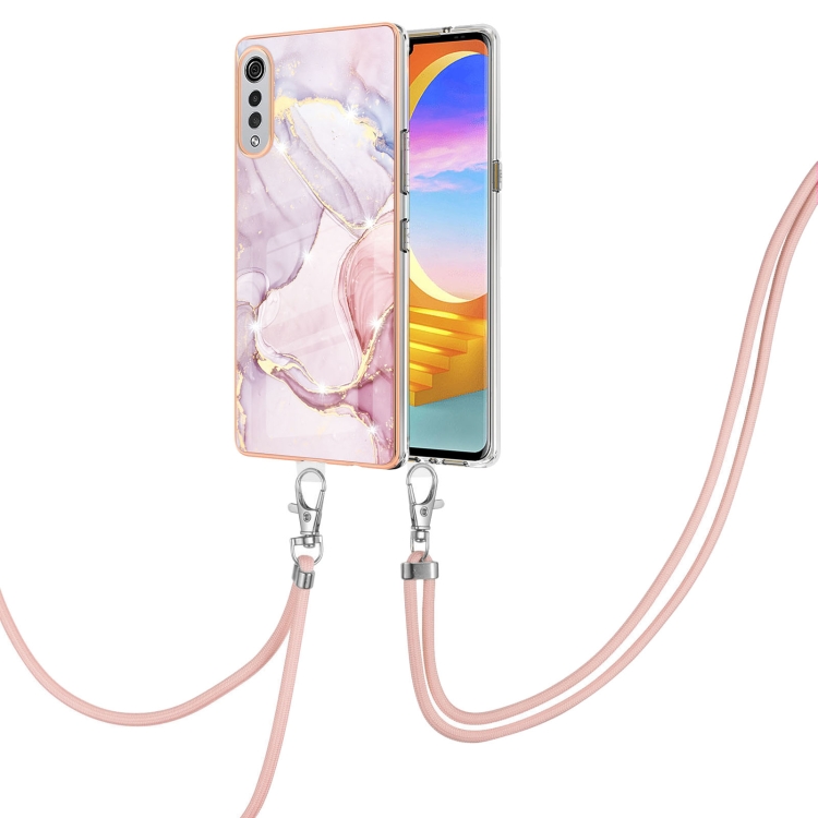 Funda TPU LG Velvet 4G 5G G9 Patrón Mármol Galvanoplastia a Prueba de Golpes con Cordillero (Oro Rosa)