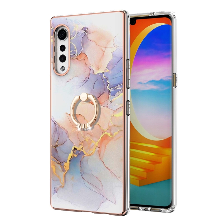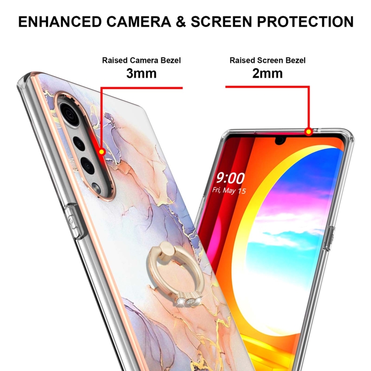 Funda TPU LG Velvet 4G Velvet 5G G9 con Patrón Galvanoplastia y Soporte Anillo (Mármol Blanco Láctea)