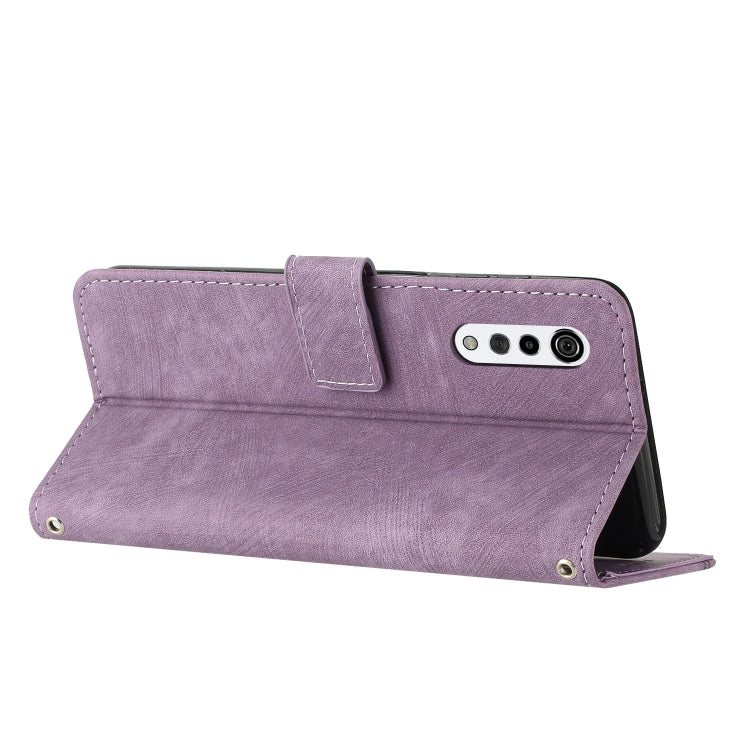 Funda de Cuero para LG Velvet y Velvet 5G con Cordón Skin Feel Stripe (Púrpura)