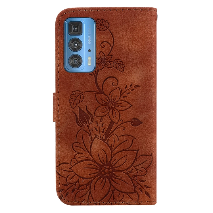 Funda de Cuero para Motorola Edge 20 Pro Lily con Relieve (Marrón)