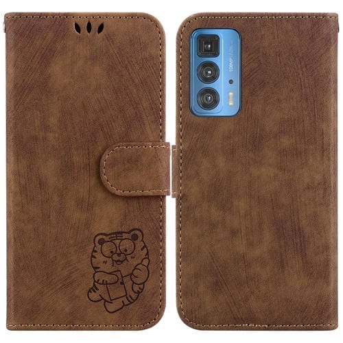 Funda de Cuero en Relieve Little Tiger para Motorola Edge 20 Pro (Marrón)