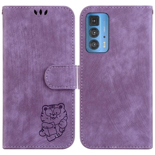 Funda de Cuero para Motorola Edge 20 Pro Little Tiger con Relieve (Púrpura)